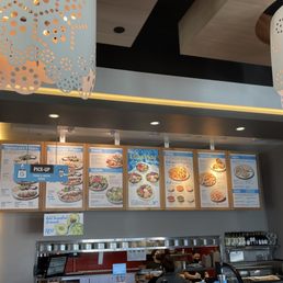Located in the Huntington Beach, Bella Terra large shopping strip center. The space is clean and bright. Closes around 9 PM on a Saturday. Ordered the gyro meat plate and the shrimp bowl. Excellent quality and tasty food. Ill plates range from $15-20. Quality is fresh and tasty. Service is good and people were friendly. I would revisit this, especially since they have free Wi-Fi and a patio for a dog.
